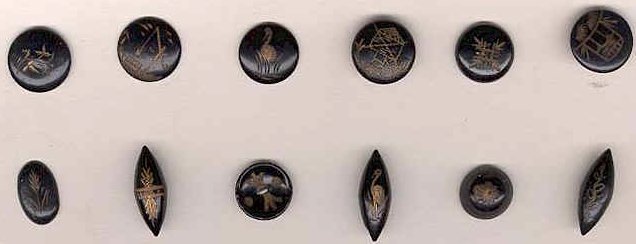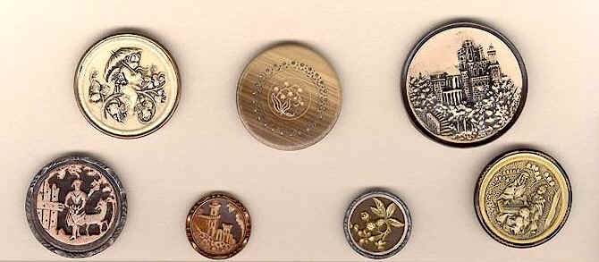 In the Figural Cabinet are featured storybook buttons, Cupids, theater, and opera buttons, to name only a few. There are also popular button reference books so visitors may take note of some of the newer books available to the button enthusiast.