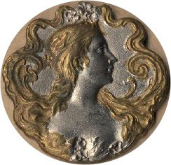 There is a button collection at the Keep Homestead Museum that includes copies of original pen and ink drawings executed by Monson art teacher and button collector, W. Louise Larsson, and are known as the Belle Époque buttons. She chose to display buttons manufactured during the Belle Époque era with her pen and ink drawings. The original drawings have sustained some damage over the years. However, her buttons are still in fine condition, and have been placed on exhibit along with copies of her pen and ink drawings generated by the use of technology. The Belle Époque period covers the last part of the 19th century and the first part of the 20th century. Very often the designs resemble the Art Nouveau era that is included in that time. There was also interest in Egyptian design inspired by the discovery of King Tut’s tomb in the 1920s.
